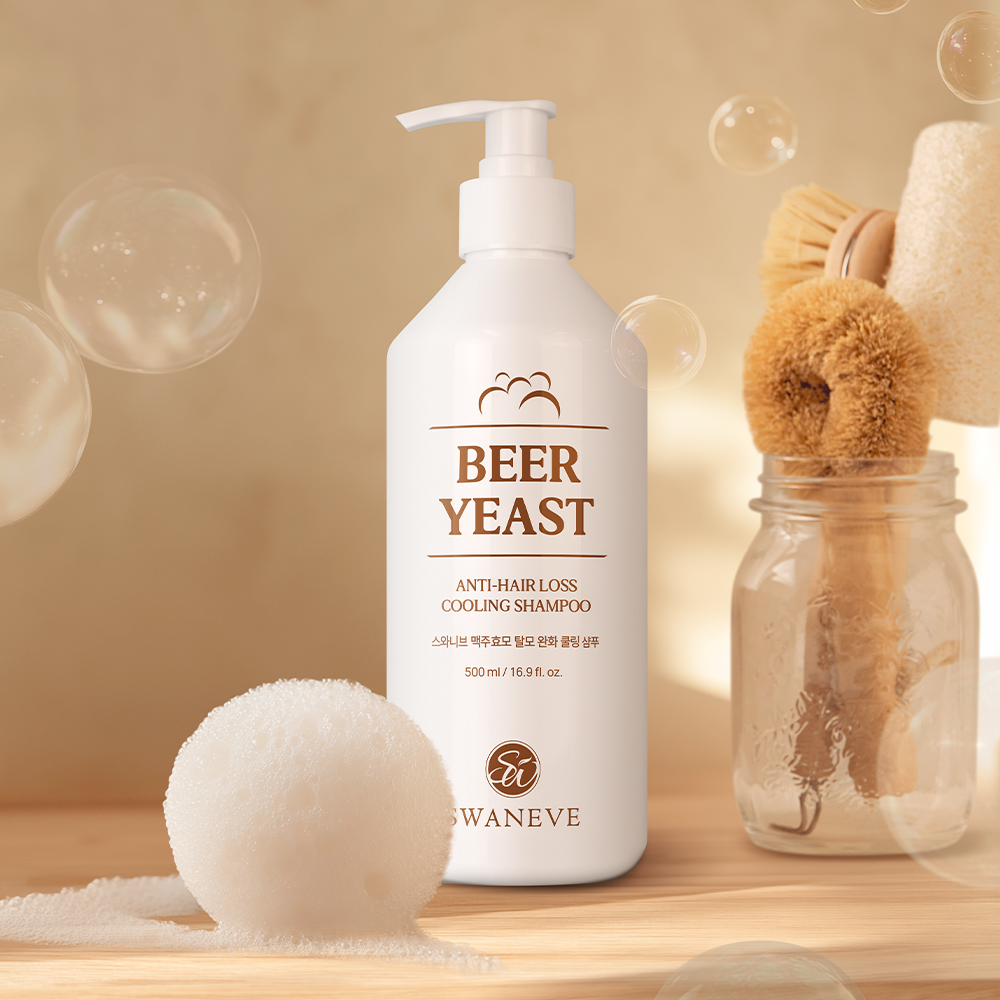 두피 모낭을 막고 있던 노폐물을 깔끔하게 씻어내기에 적합한 스와니브 맥주효모 쿨링샴푸